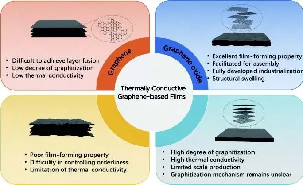2018 年起,以石墨烯或氧化石墨烯(GO)为前驱体制备的石墨烯基导热膜快速发展,其厚度可从几十纳米到几百微米调控,成为解决高性能电子设备热管理难题的关键材料。